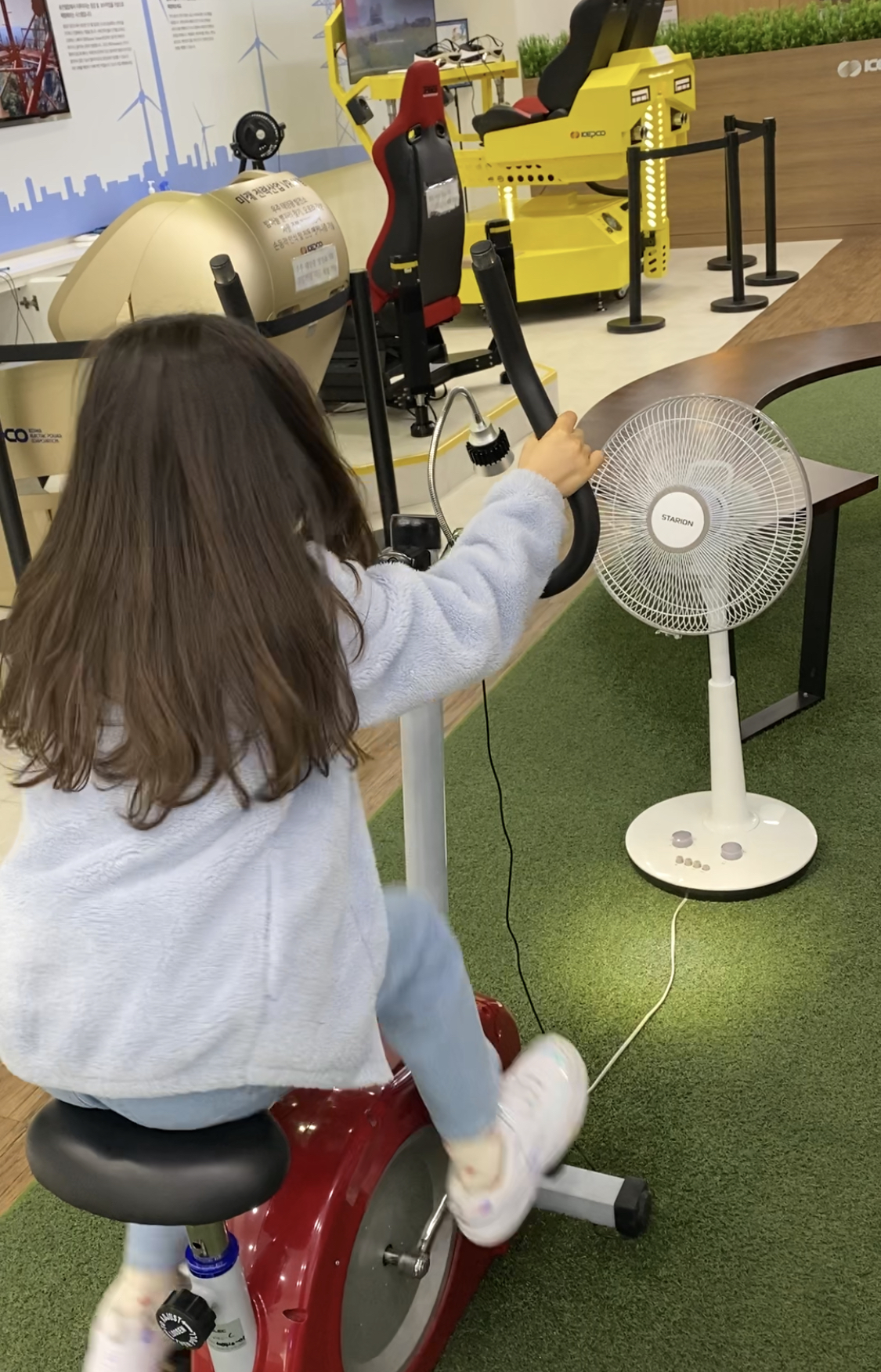 직접 운동을 해서 전기를 발생시켜보는 체험을 통해 전기를 만들기 위해 얼마나 많은 에너지가 필요한지 몸소 느껴보고 전기 절약에 대한 생각도 해보게 합니다.