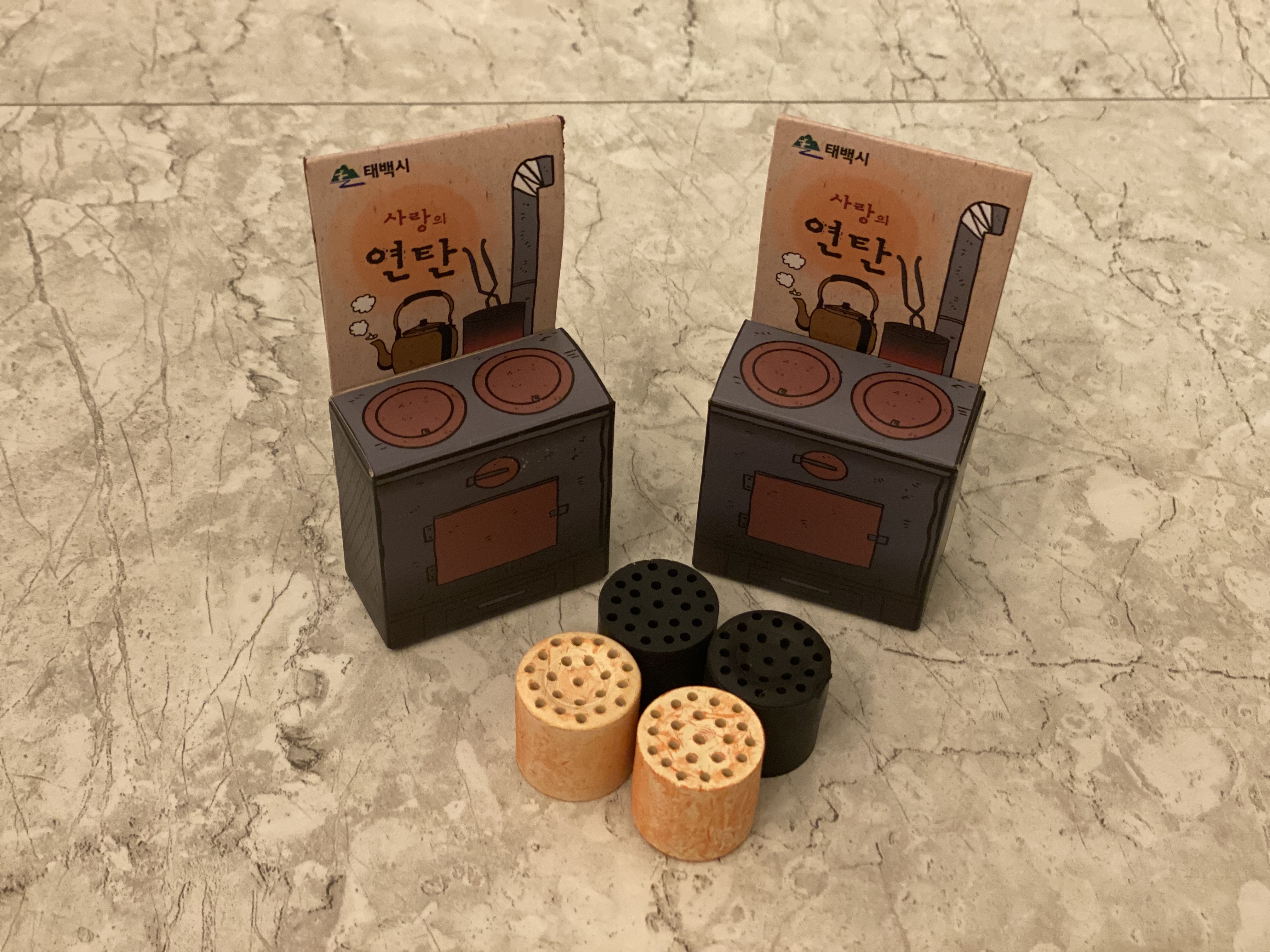 태백여행기념품으로 탄광마을빵과 연탄지우개를 구매했습니다.