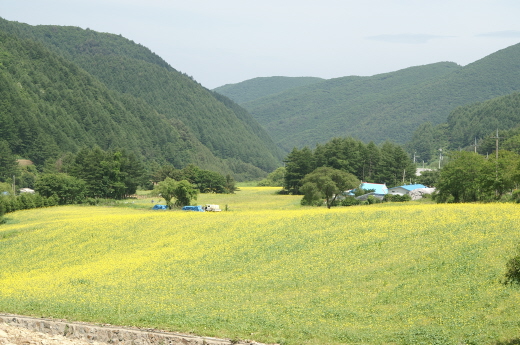 초여름에 활짝 핀 유채꽃