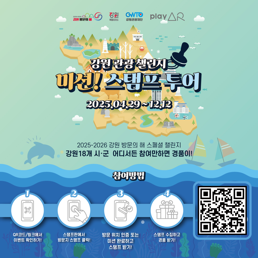 2025~2026 강원 방문의 해 연계하여, 「강원 관광 챌린지 프로모션」이 진행되오니 많은 관심과 참여 부탁드립니다.