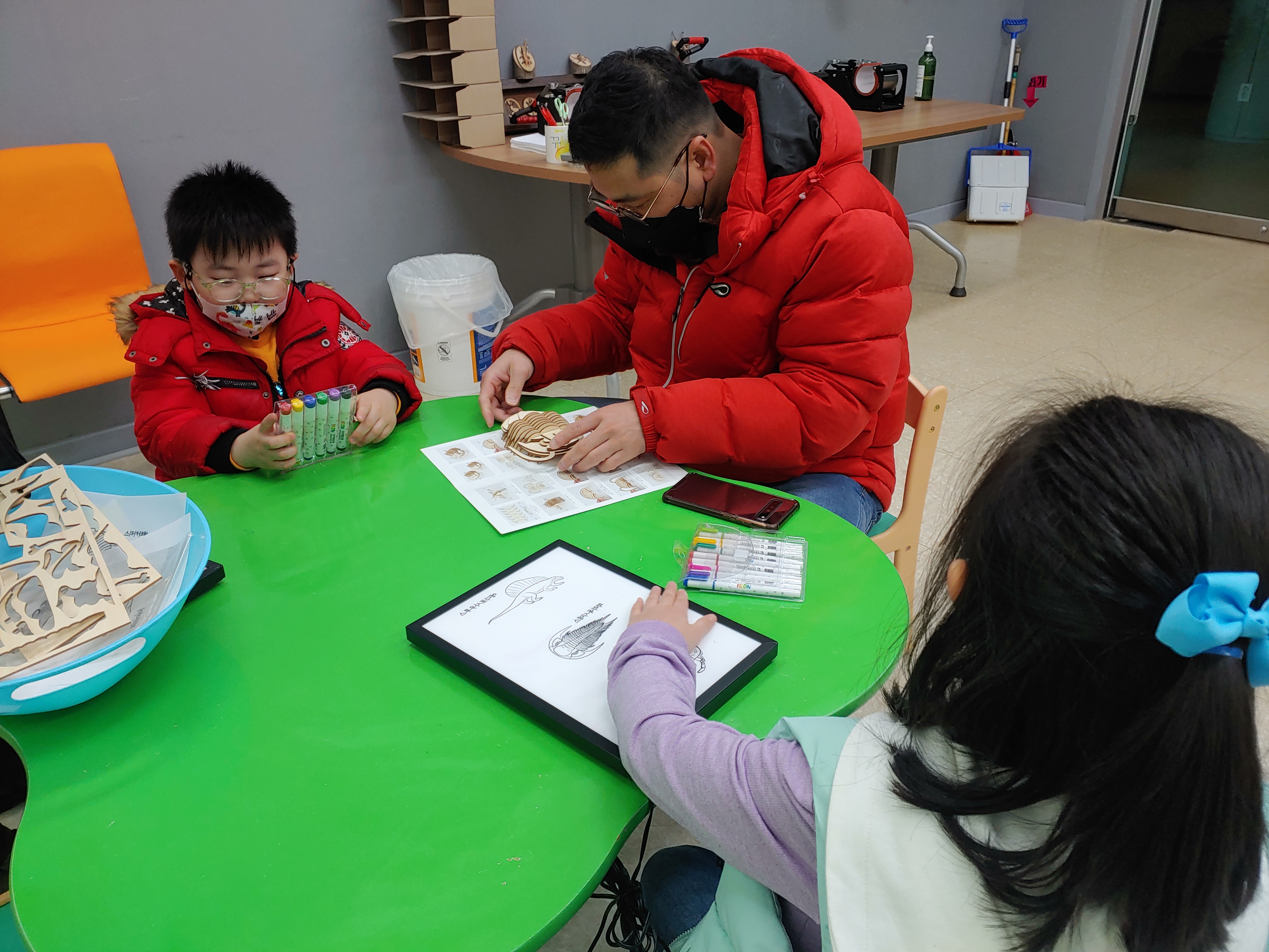 아이 둘을 데리고 낮은 의자에 앉아 아이들과 함께 삼엽충 교보재를 조립을 열심히 하시는 모습에 웃음이 묻어나 촬영하고 여기에 올립니다.