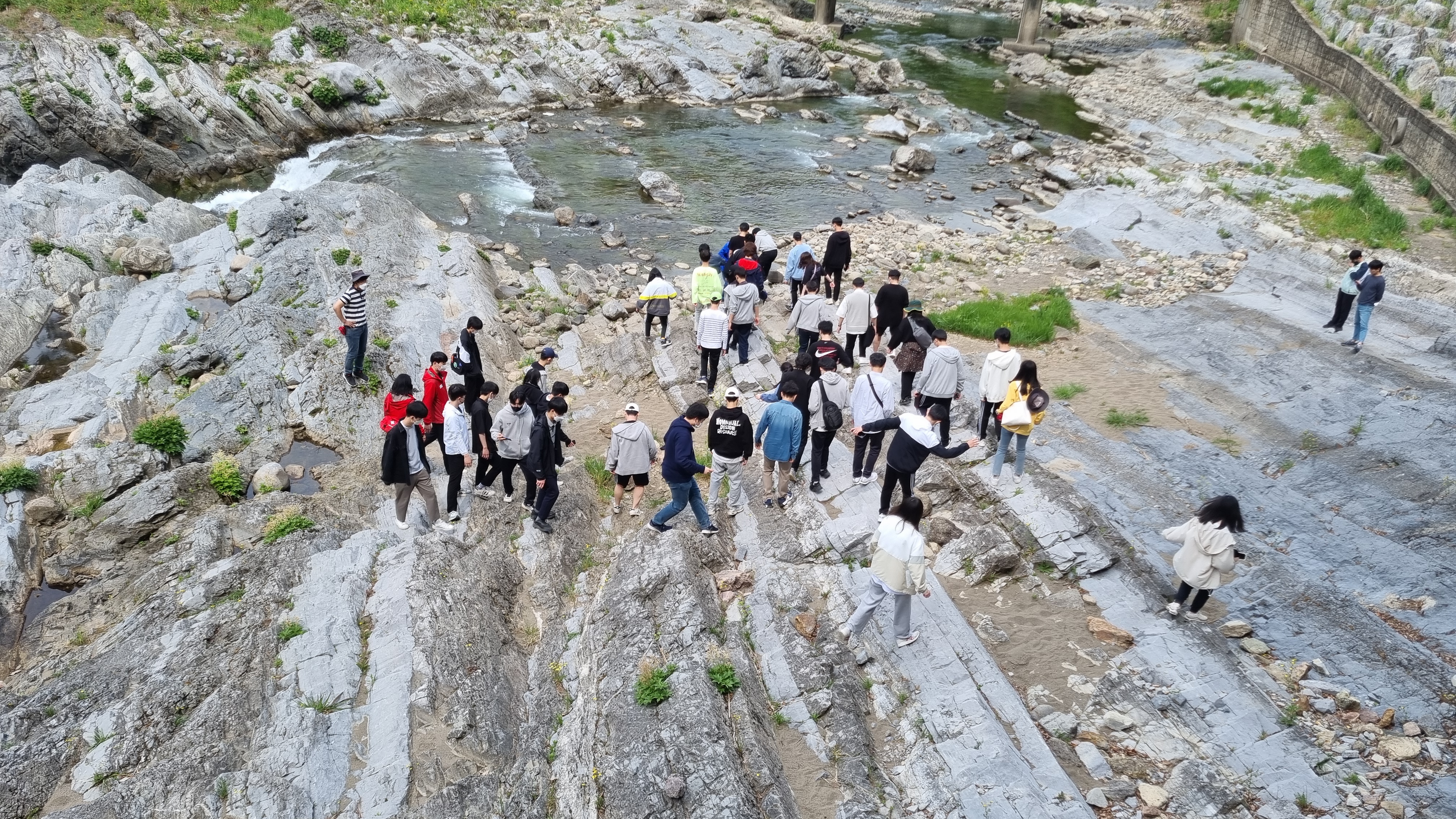 이곳 지질학적 공부가 풍부하신 국가지질공원해설사께서도 사뭇 긴장(?)하는 듯 한 모습입니다. ㅎㅎ