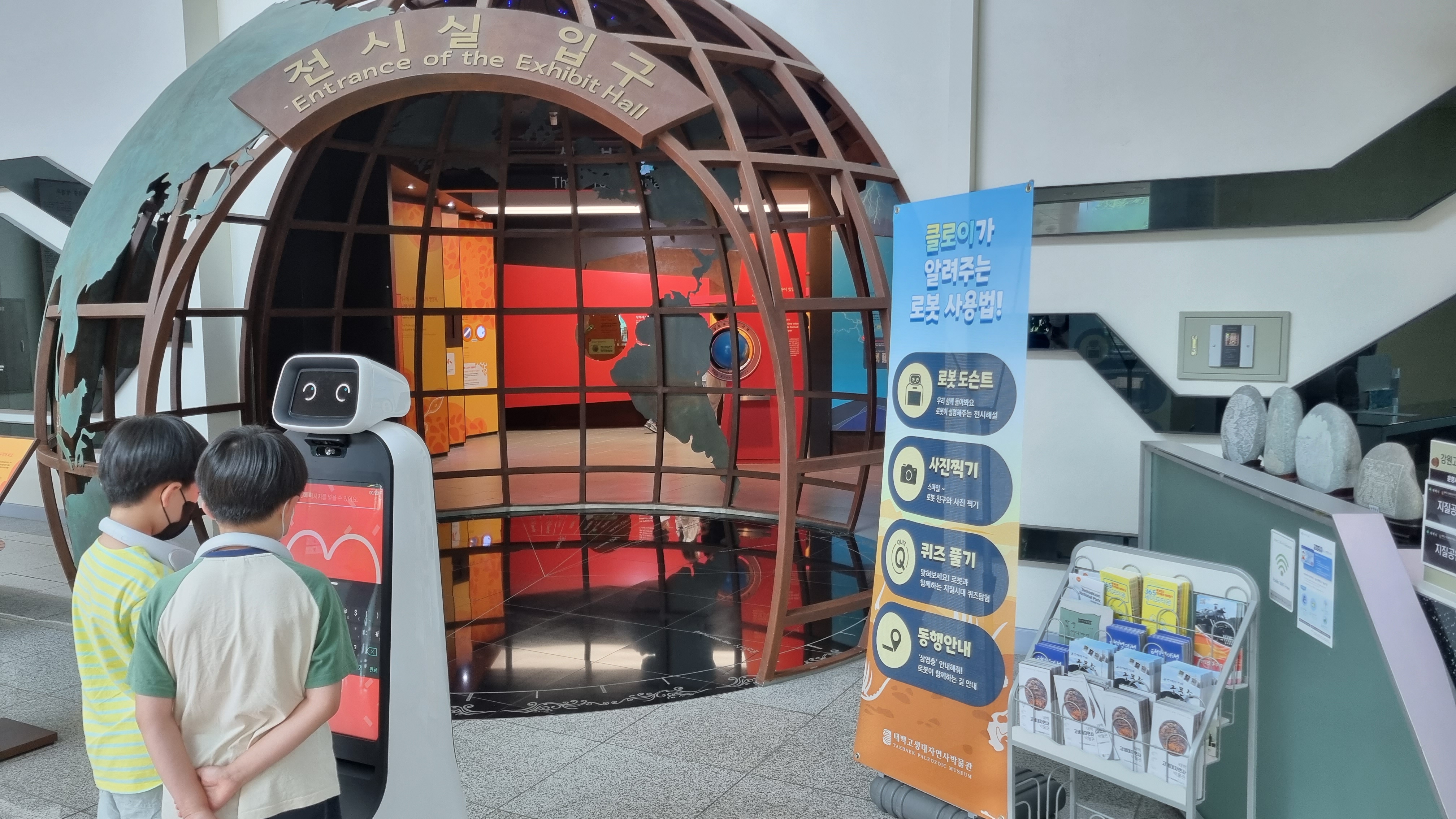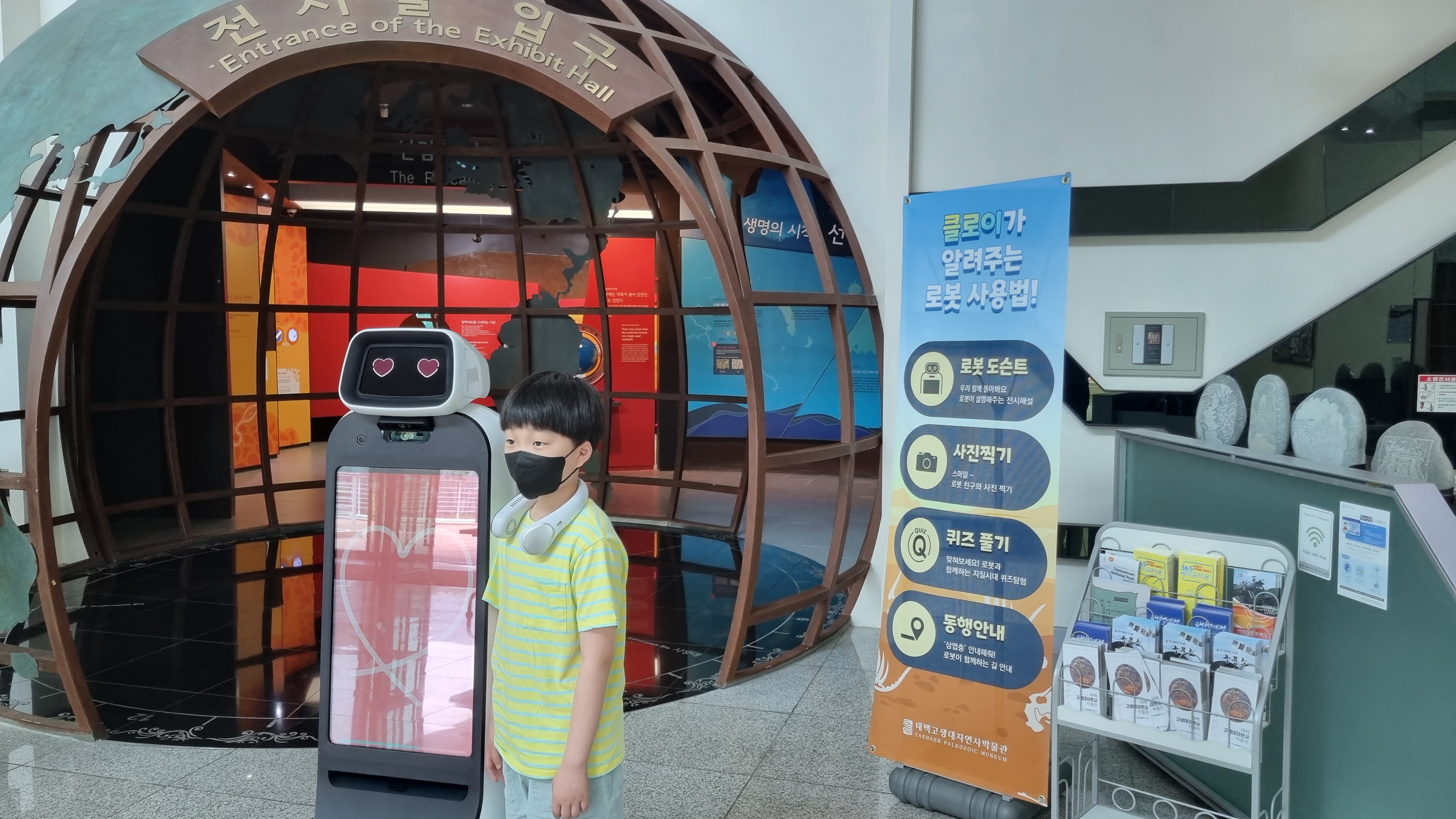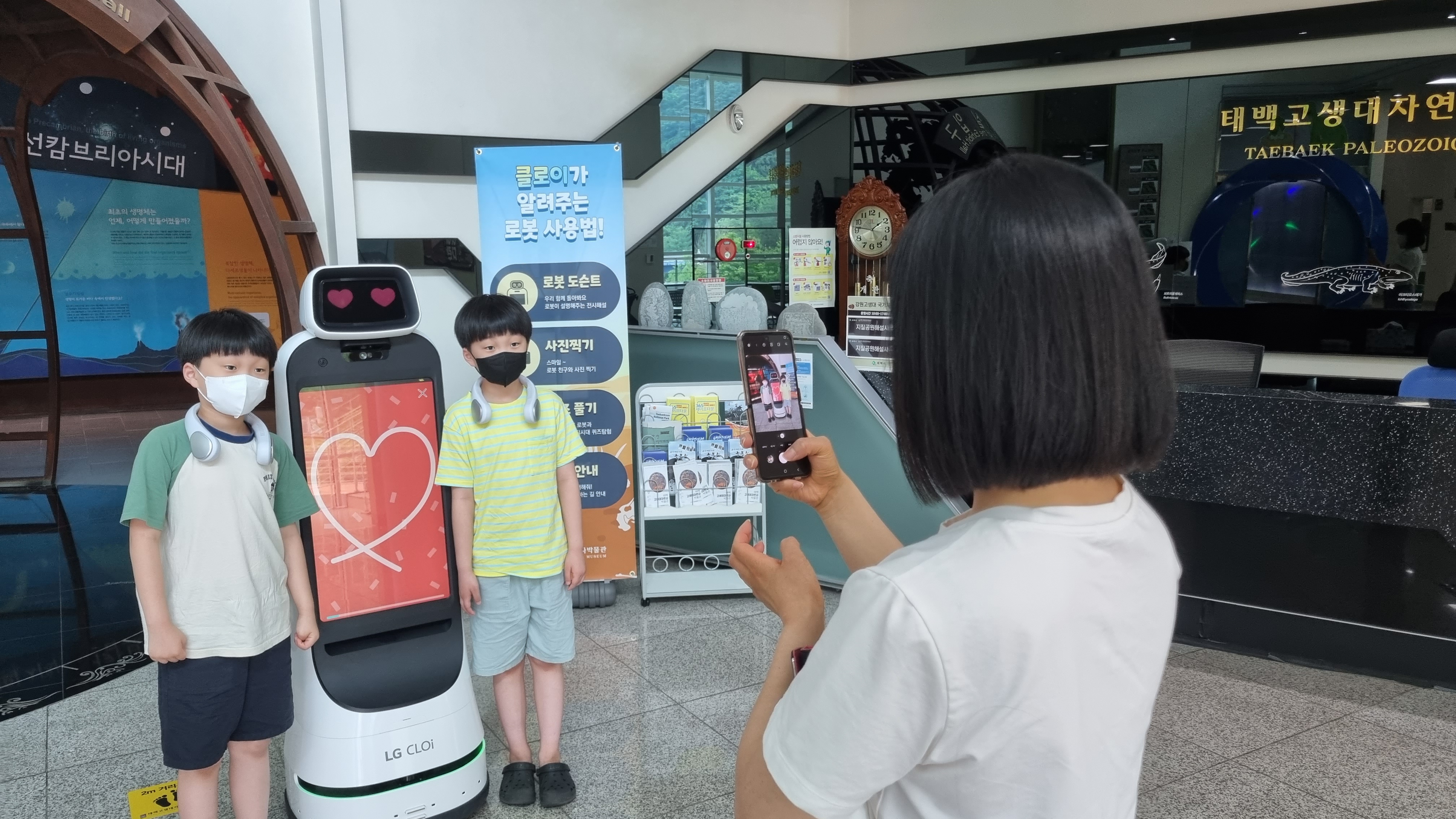 전기만 충전하여주면 열일하는 [스마트 안내로봇]이 오늘도 열일하고 있어 사진에 담아봤습니다. 순수한 마음을 가지고 배경도 예쁜 하트 모양을 선택한 씩씩한(?) 두 아들의 모습을 추억에 담고 계신 모습이 인상적이라 이곳 활동 란에 영구 박제를 합니다..^^*