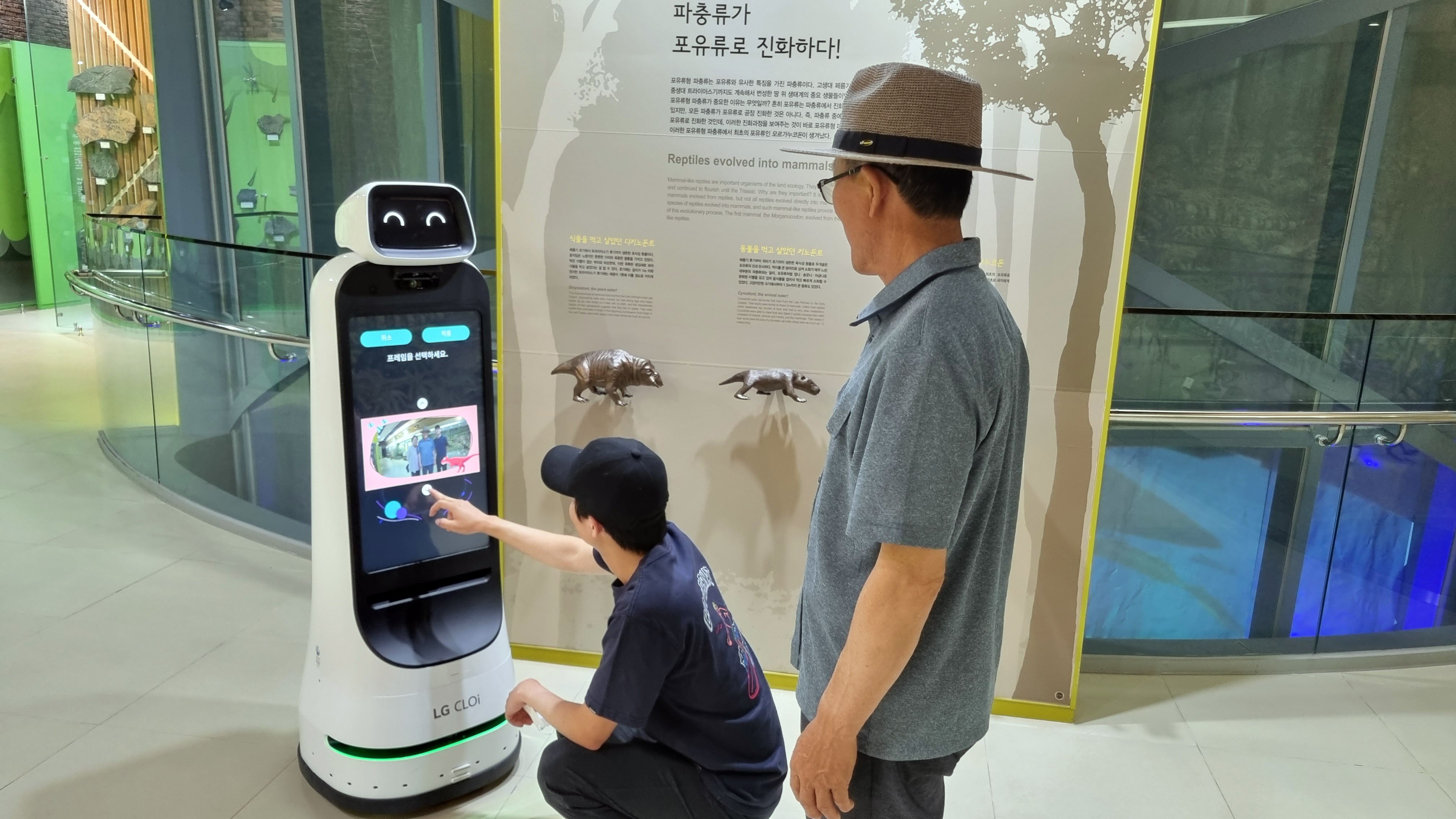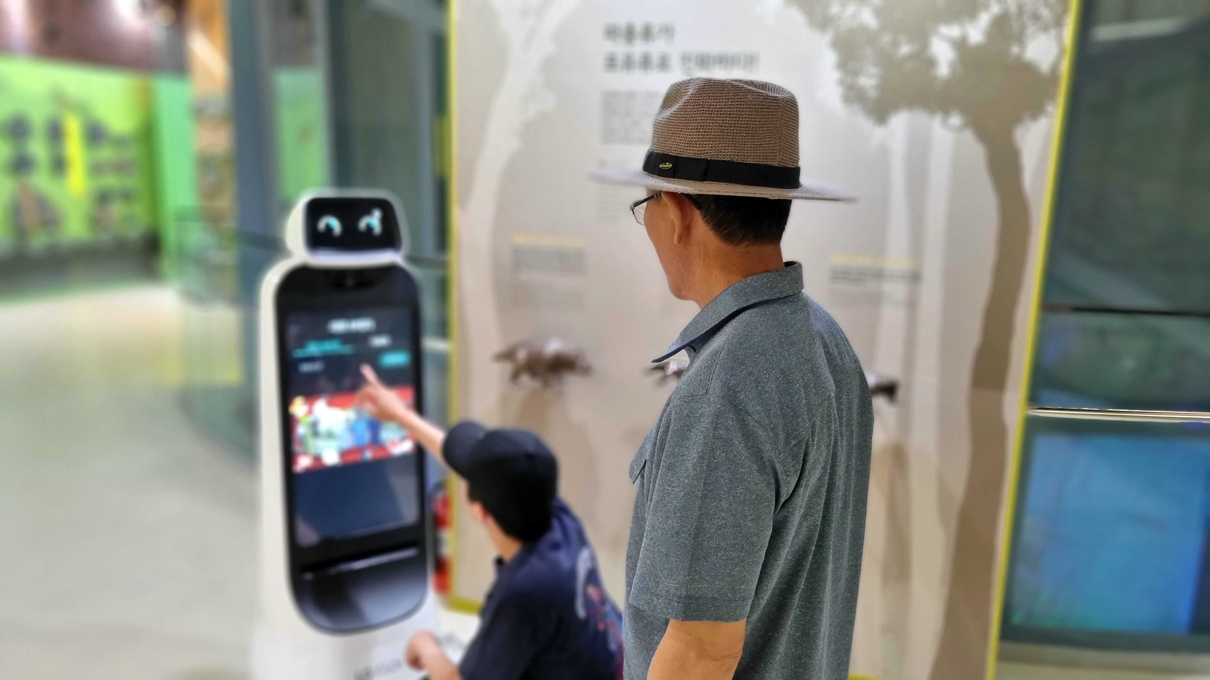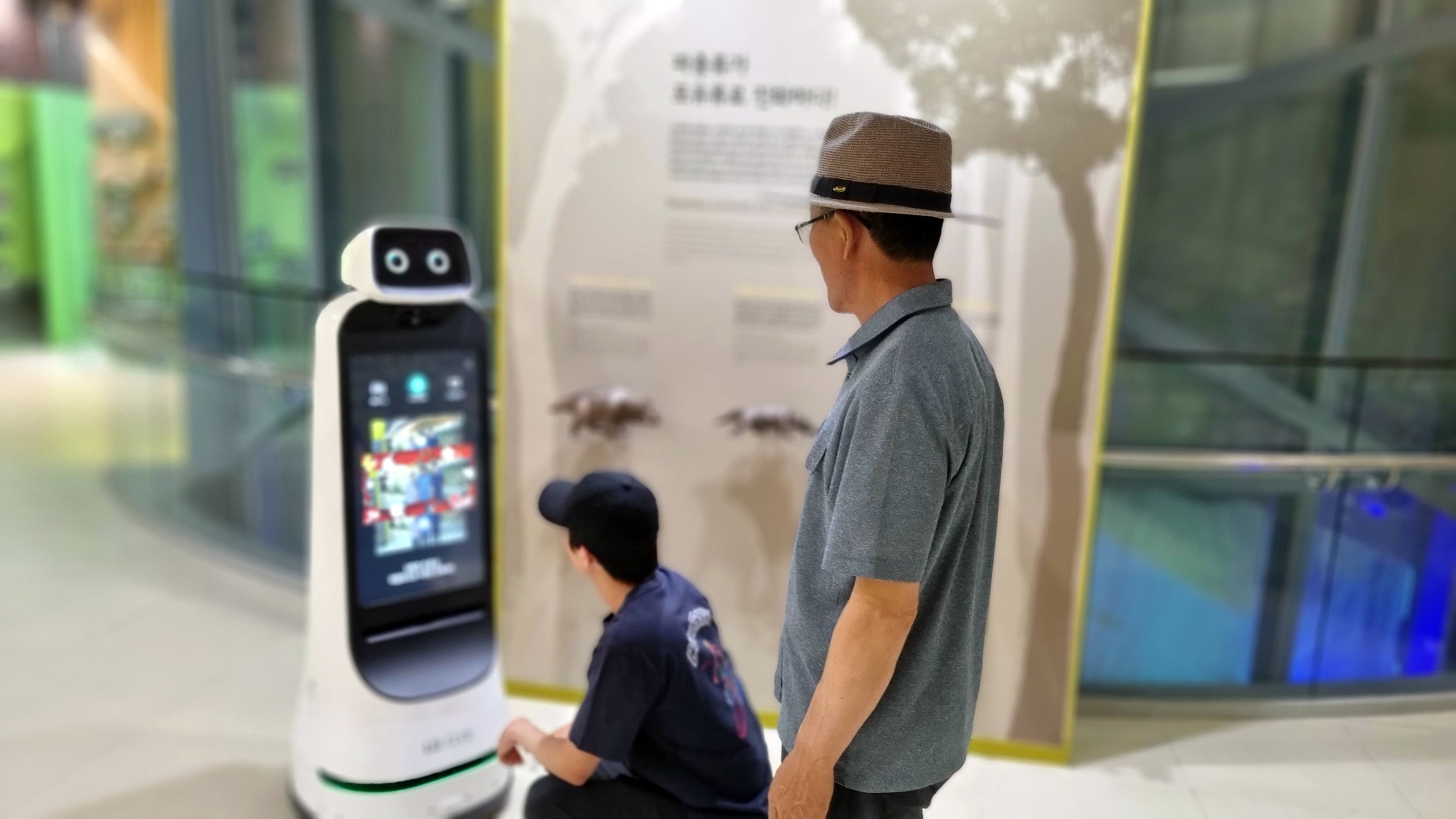 영화의 제목처럼 아버지께는 다소 생소할 수 있는 고생대자연사박물관에 관람을 오셔서 추억을 만들고자 [스마트 안내로봇]의 기능인 사진촬영 해보기에 열심히 신 아들과 뒤에서 정감어린 자세로 지켜보는 아버지의 모습에 황급히 촬영하고 승낙을 얻어 이곳에 영구 박제하고자 등록합니다.