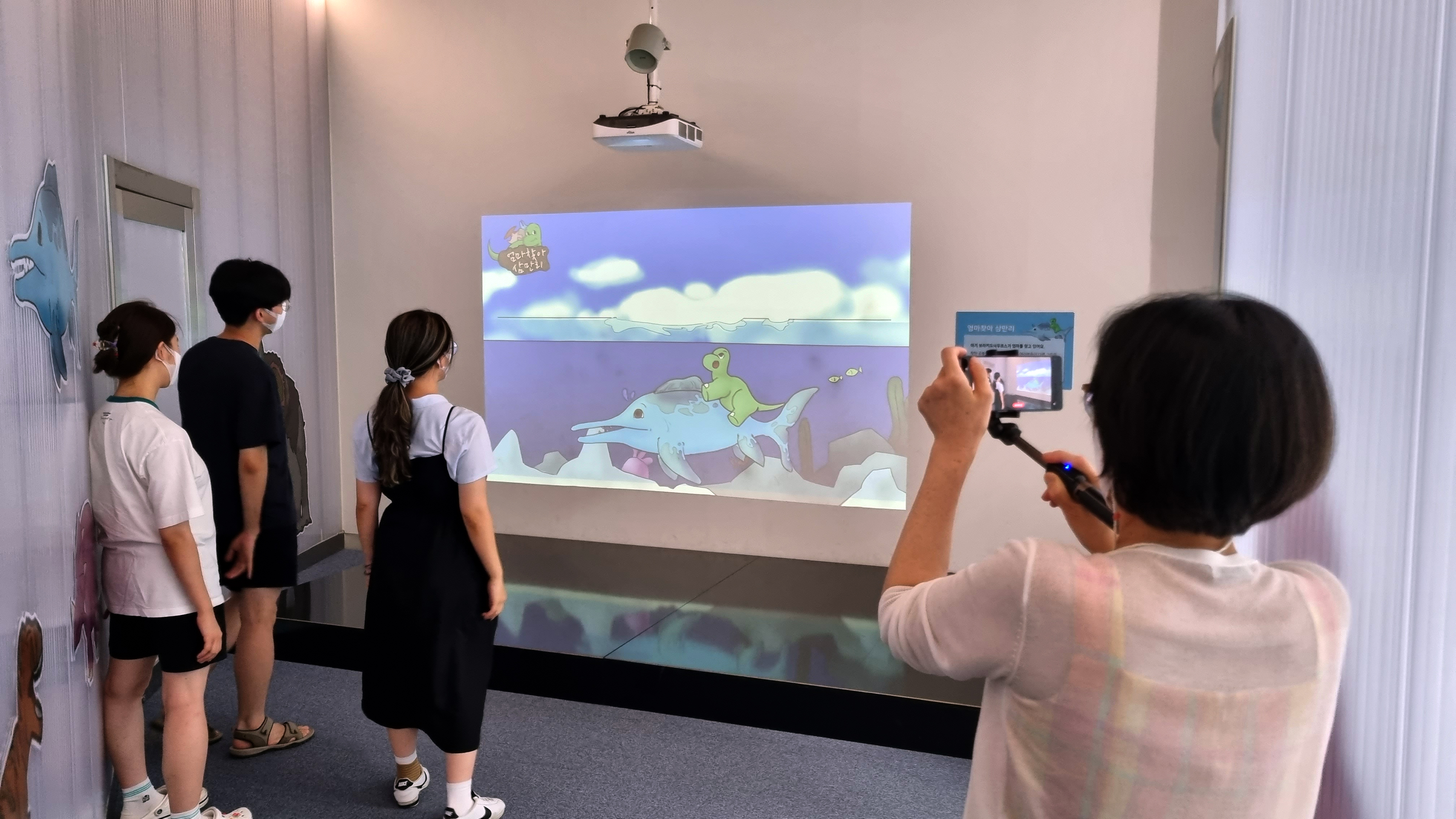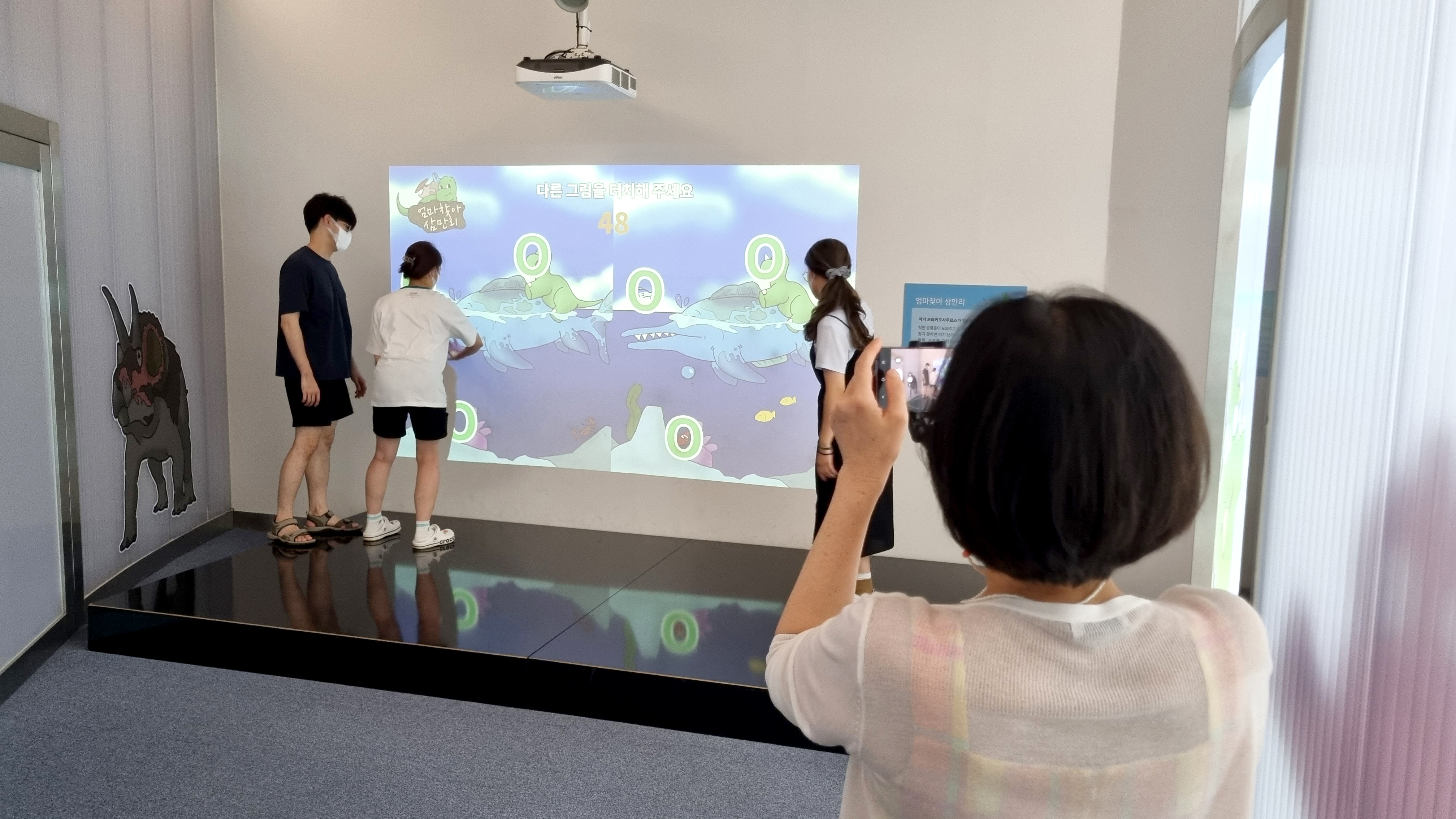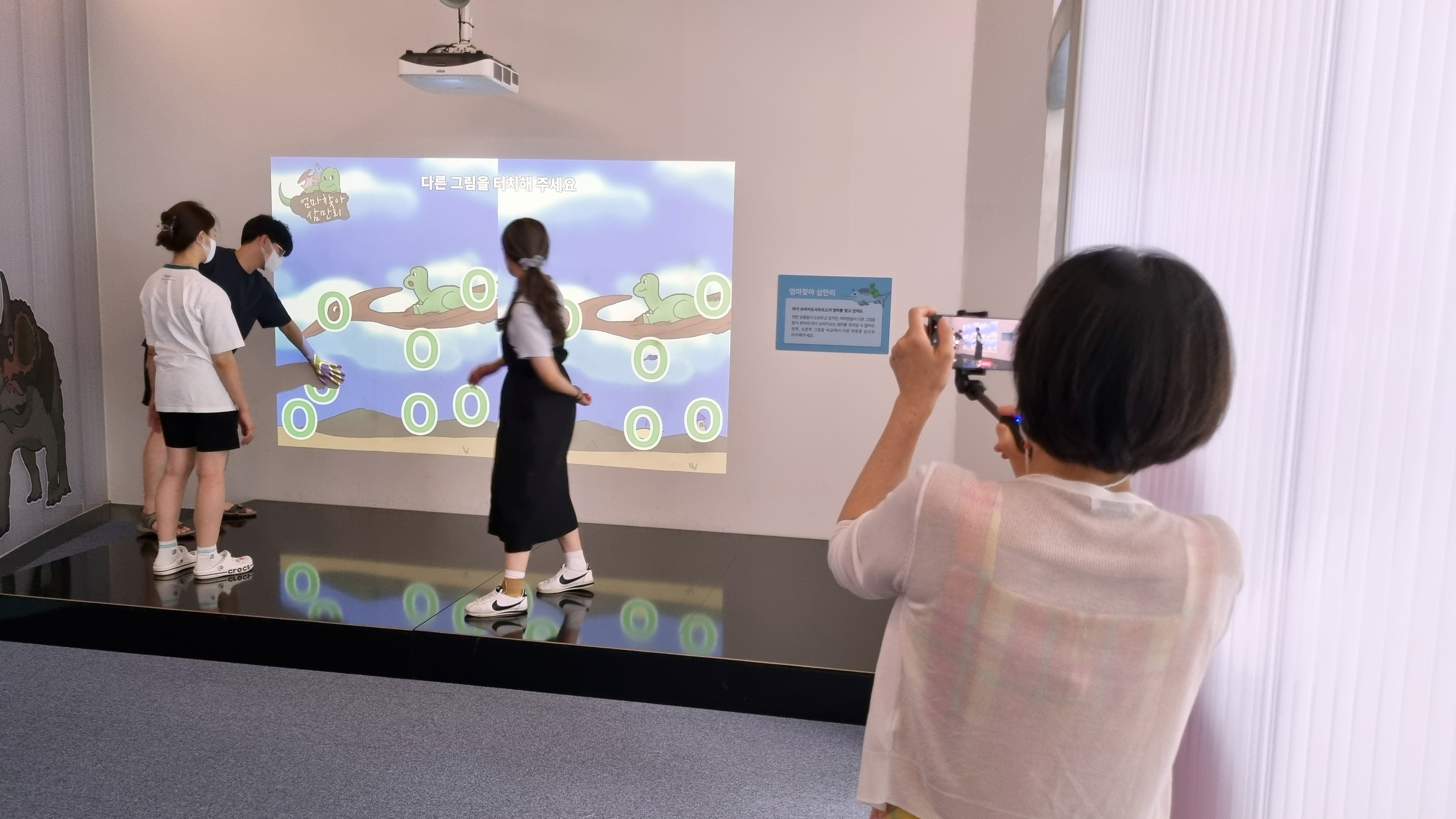 저희 박물관 입구로 들어오시면 좌측 공간에 [고생대 콘텐츠 체험관]이 있고 공룡을 모티브로 몸으로 체험할 수 있는 저학년 아이들을 위한 공간이 조성되어 있는데요,