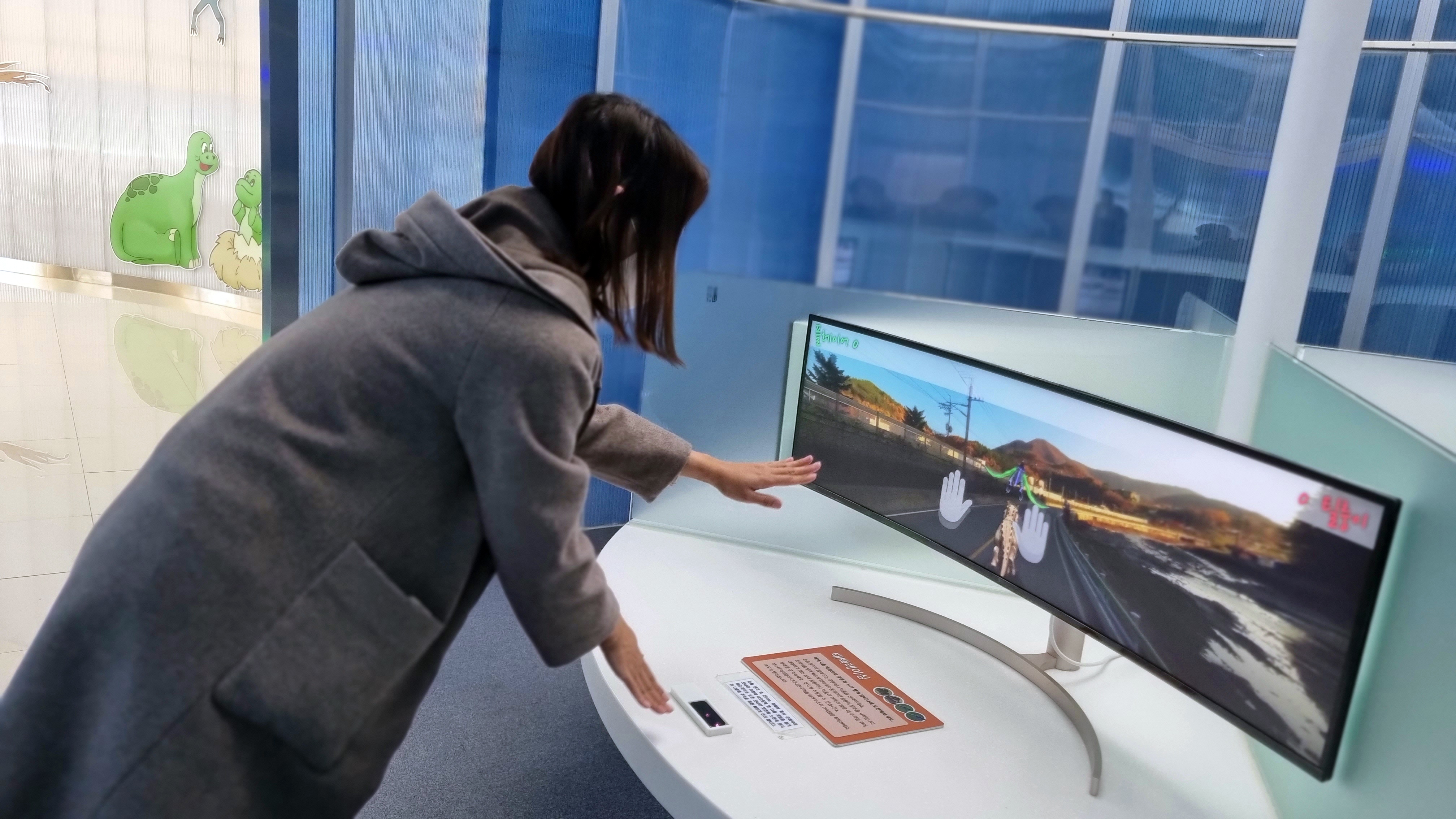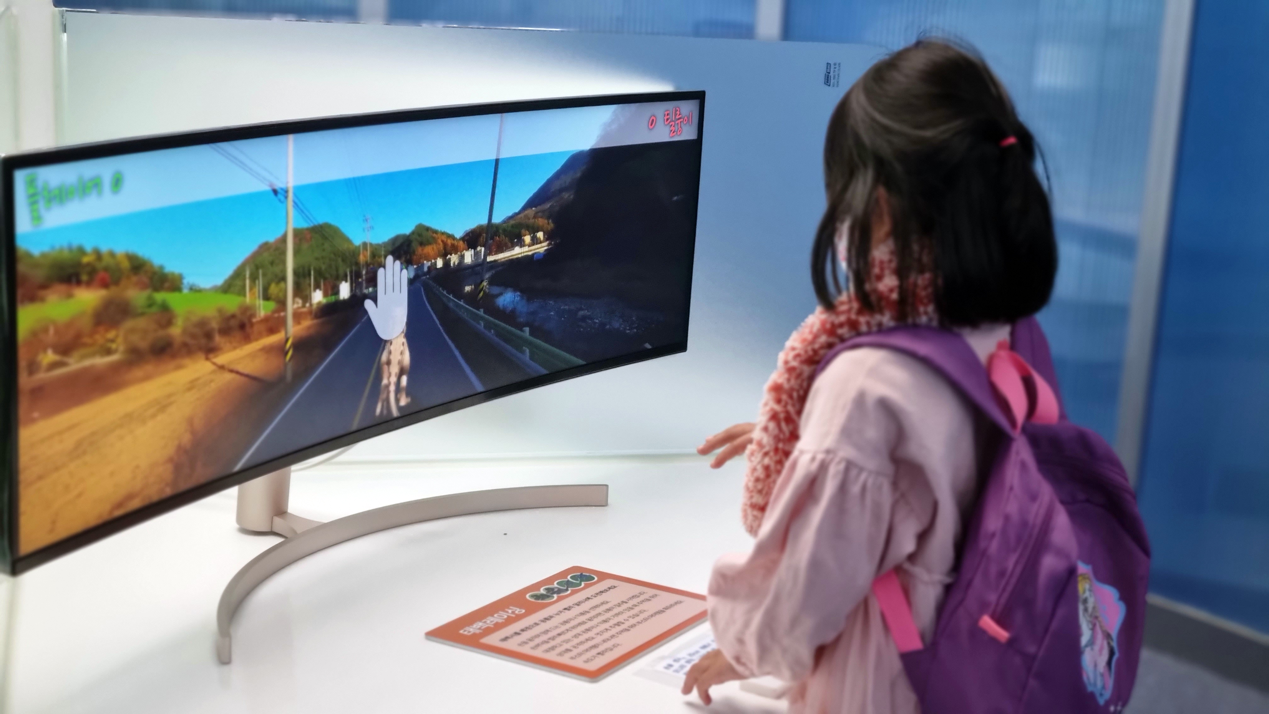 2022년 11월 6일 오늘 오후시간에 박물관 여행을 오신 가족분들이십니다. 저희 박물관 입구 좌측에서 아이들이 여러 공룡과 관련된 게임 콘텐츠를 즐길 수 있는 [고생대 콘텐츠 체험관]이 운영되고 있으며, 그 첫번째는 태백의 철암지역을 배경으로 공룡달리기를 하는 레이싱 체험시설입니다.