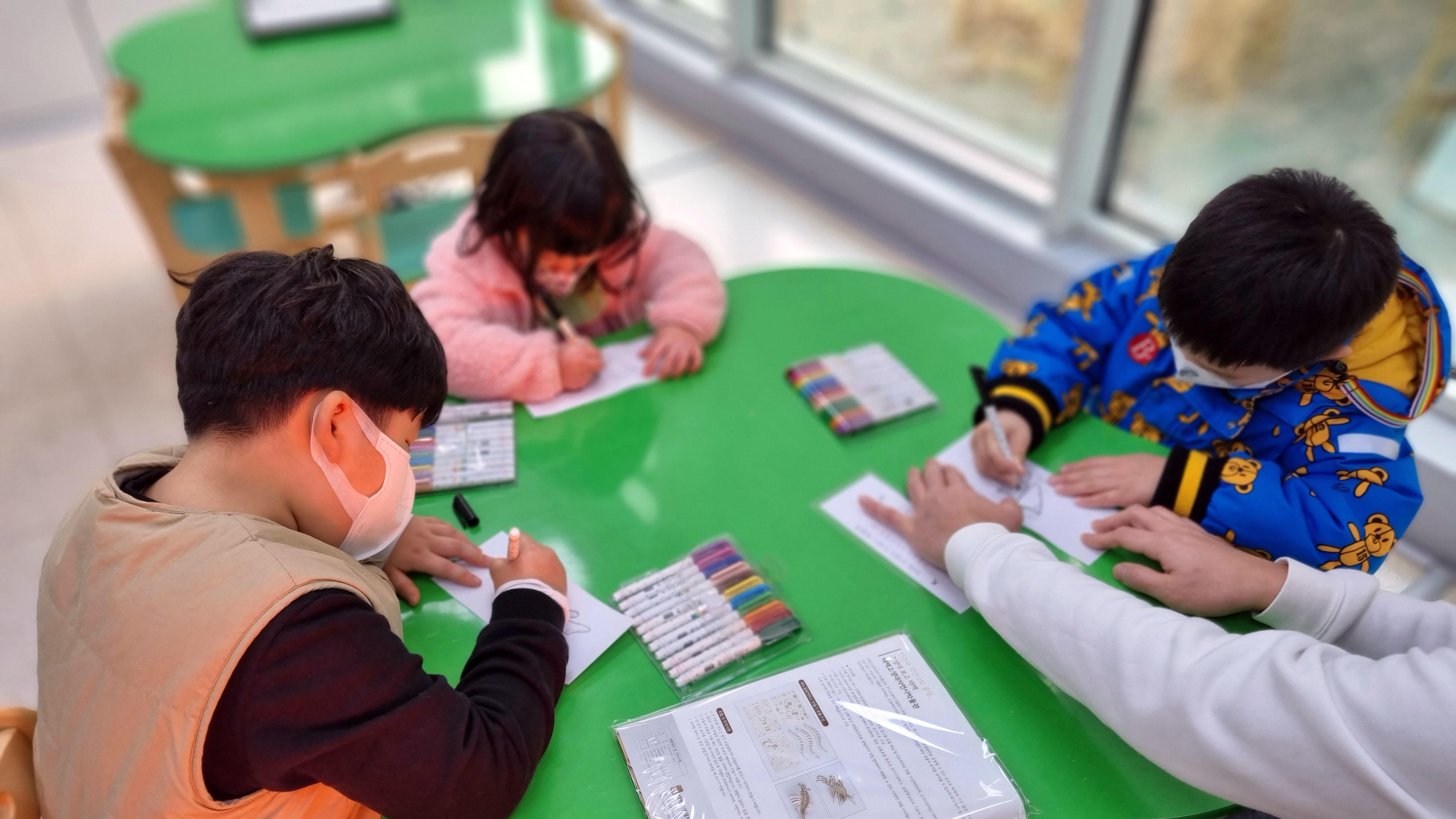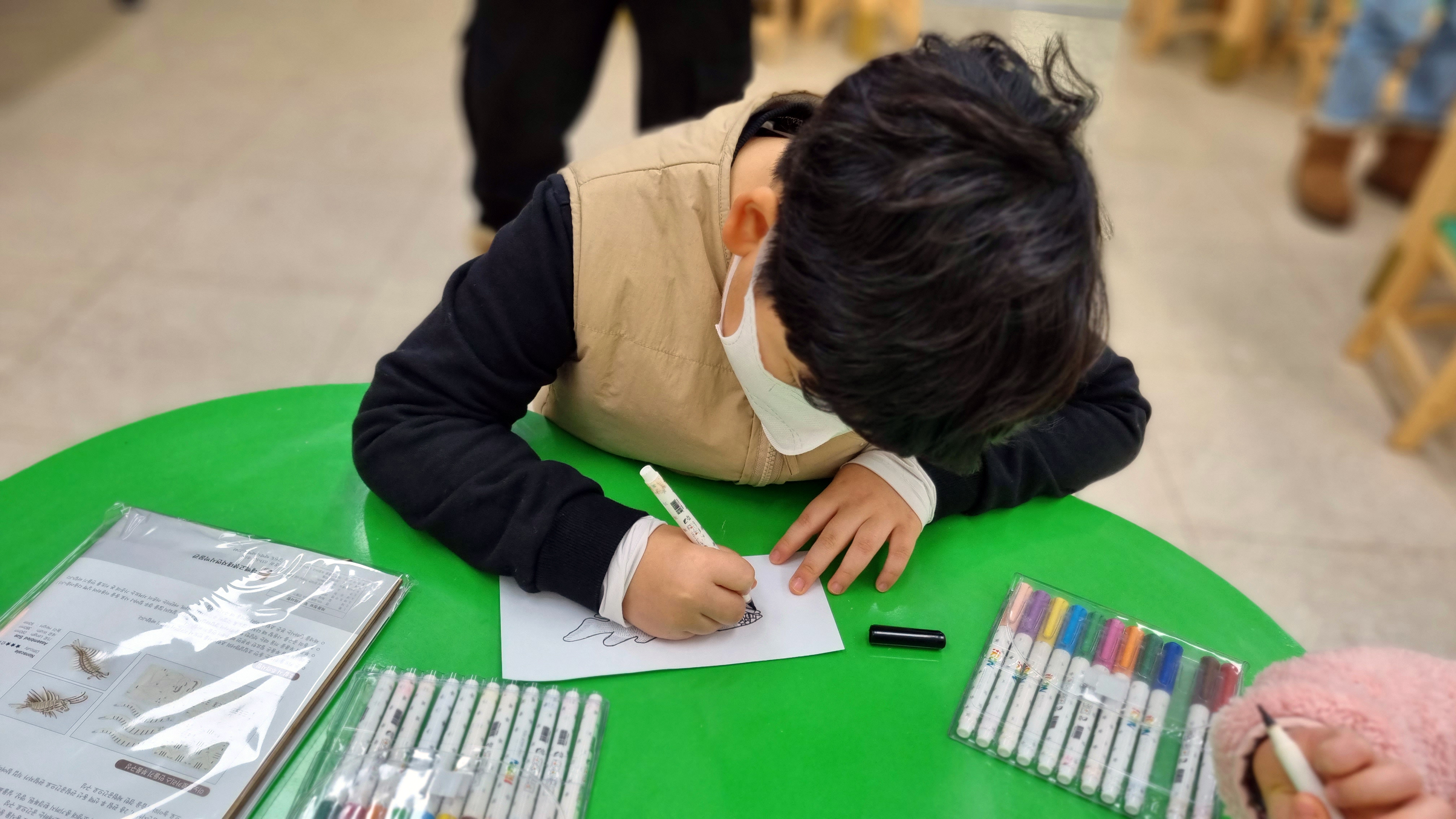 귀여운 친구 3명이 [고생물 친구들] 체험인 머그컵에 고생물을 그려보는 놀이에 참여를 하였습니다.