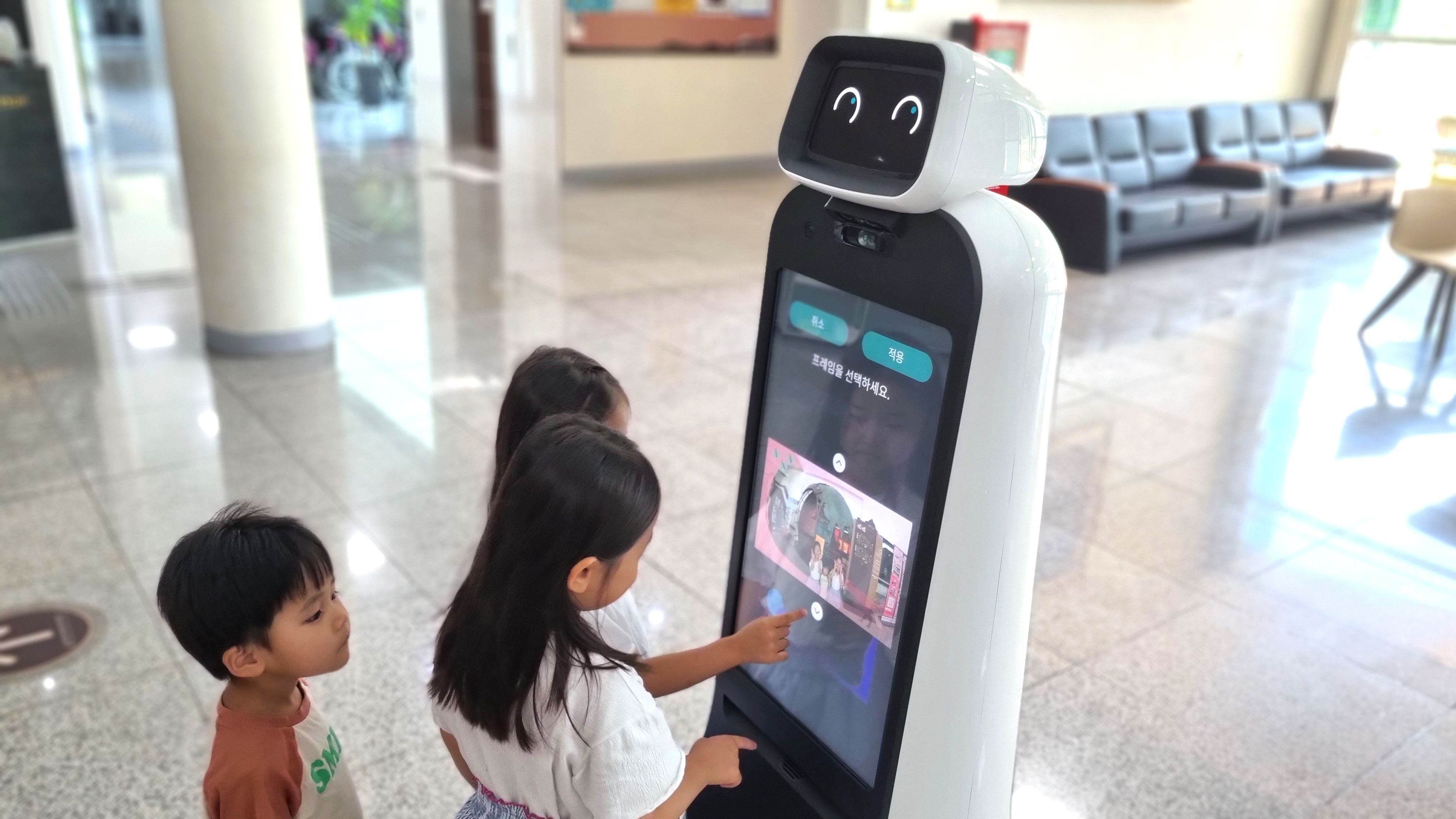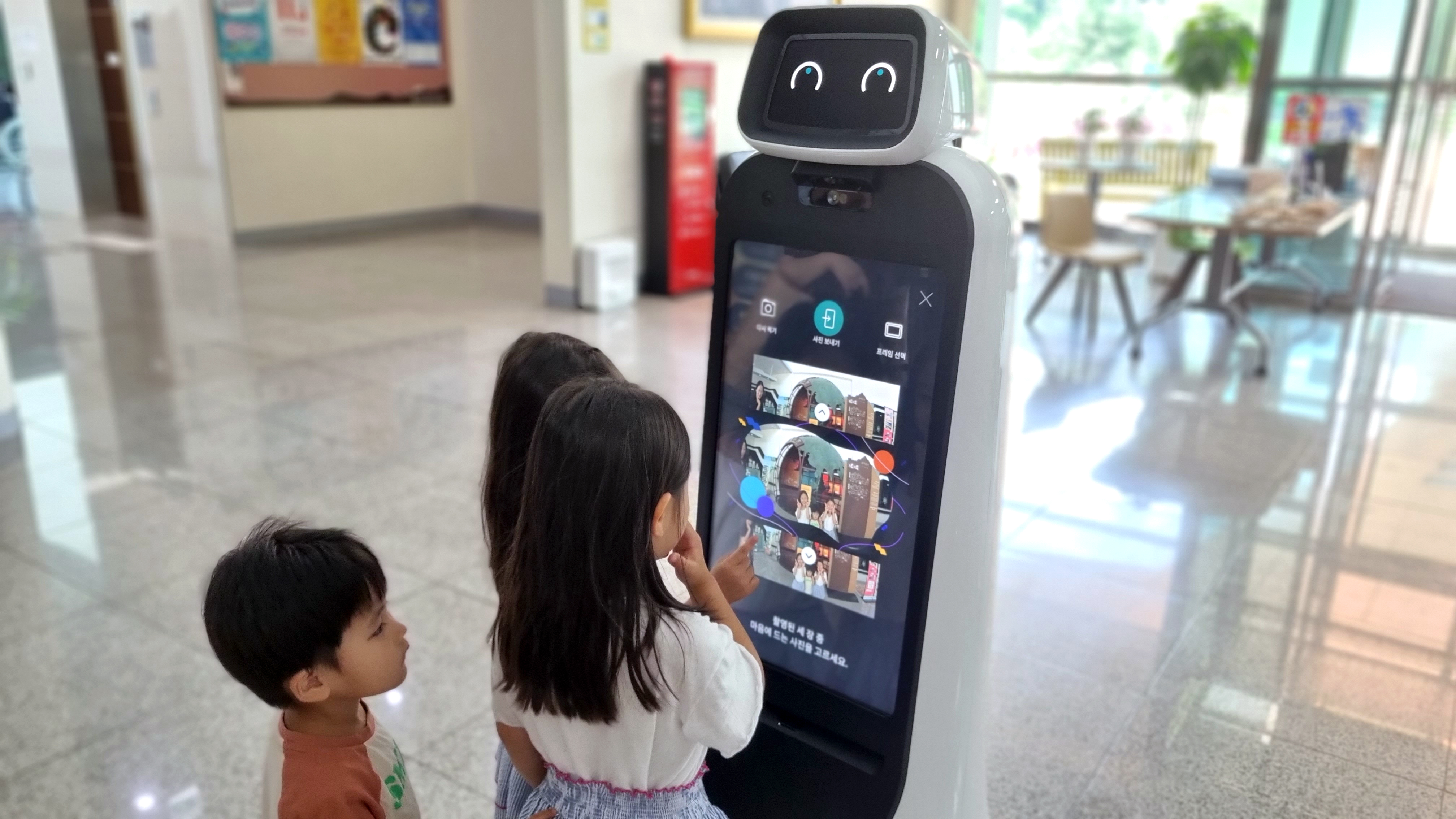 움직이는 스마트안내로봇을 신기하게 보고있어 사용법을 알려드리고, 기념으로 활용하는 모습을 담아 남겨봅니다.