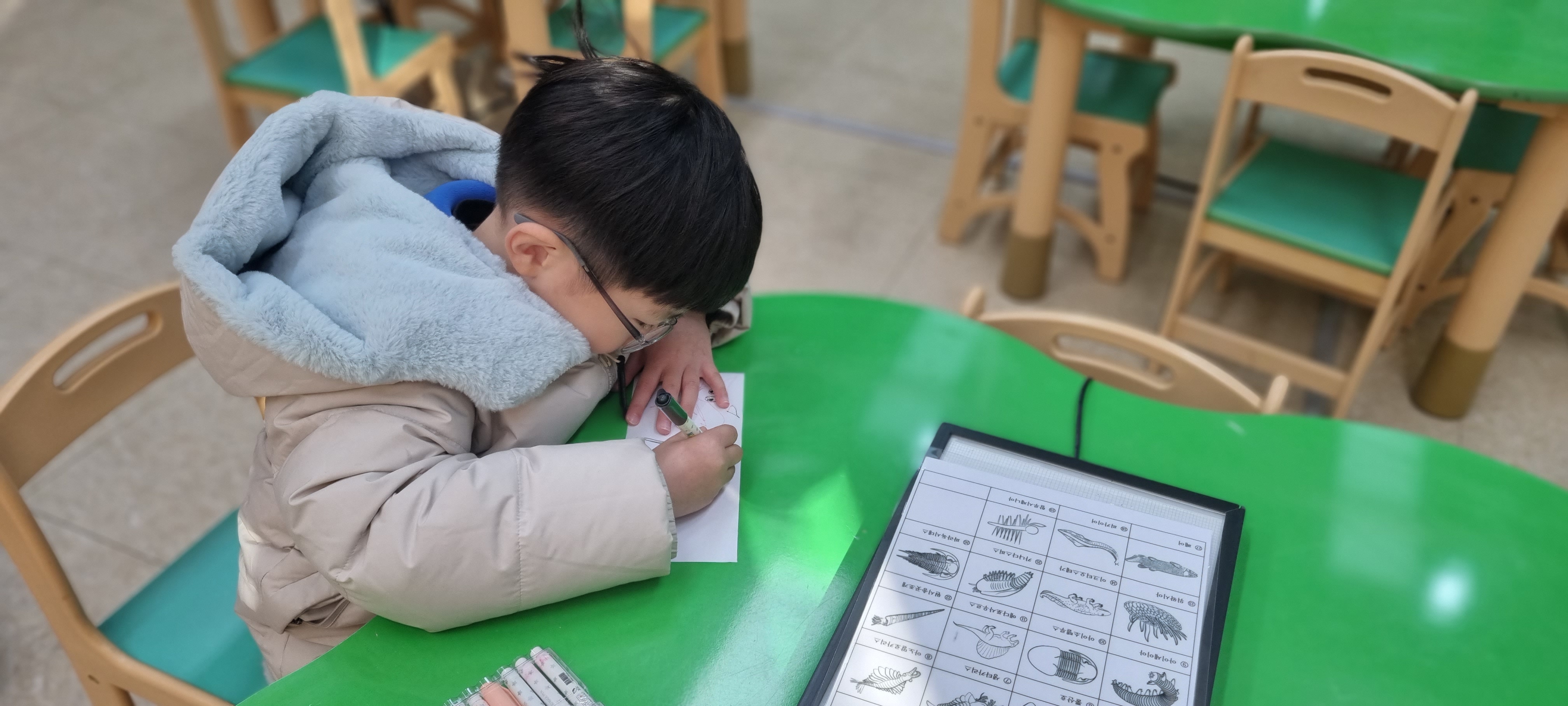 일부 관람 후 체험실에서 고생물을 머그컵에 그려보는 체험을 하였는데요, 대부분 주어지는 고생물을 바탕으로 그림을 그리지만 우리 두 아이들은 창작의 날개를 펼쳐 새로운 그림을 그렸습니다. 전 오늘 새로 탄생한 새로운 피카츄를 목격했습니다..^^