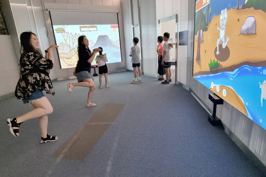 오후 이른시간 지질에 어마어마하게 관심이 많은 가족분들이 방문하셔서 삼엽충과 완족류, 두족류 화석산출이 뛰어난 전기고생대 직운산층을 잠깐 안내 답사를 하고 콘텐츠체험관을 점검차 들어갔는데, 마음이 너무 맑은 친구분들이 너무나도 즐겁게 즐기셔서 동의하에 등록합니다.
