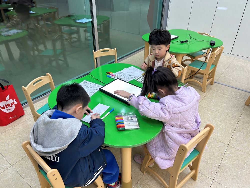 3명의 아이들이 서로모여 즐겁게 머그컵 체험하는 모습을 담아보았습니다~
