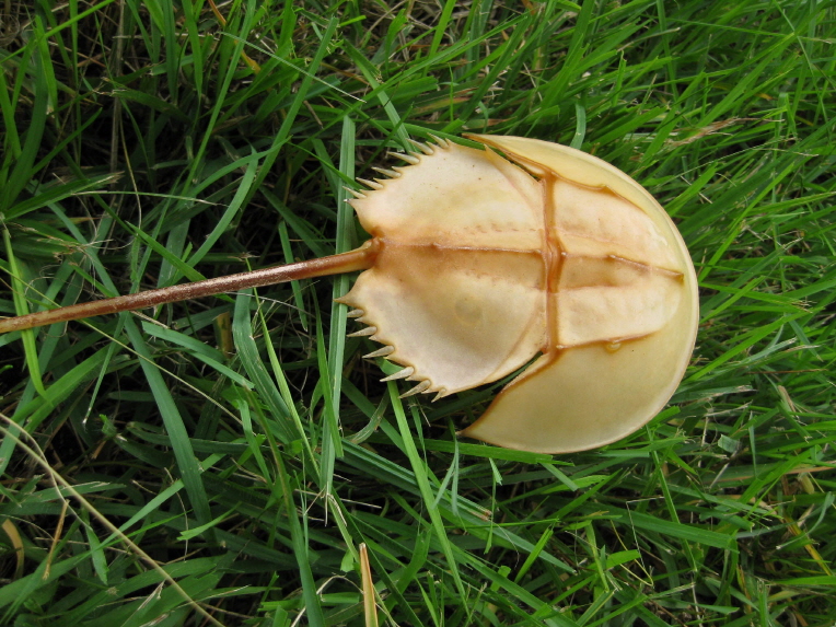 이곳에 사육하는 투구게( horse-shoe crab) 중 한마리가 지난 밤에 저도 모르게(?) 탈피를 하고 맑은 미색이