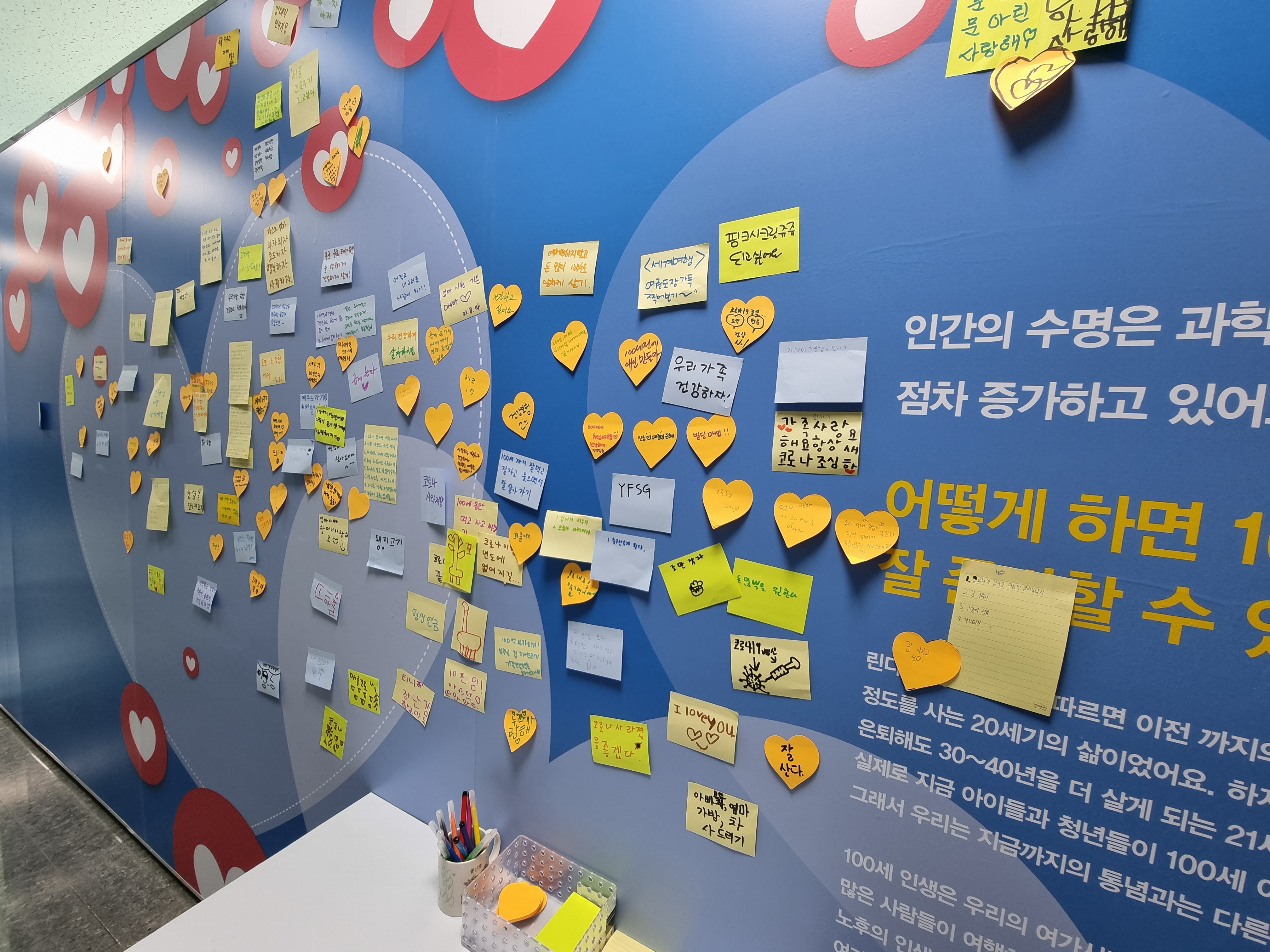 오늘 오후에 돌다보니, 협동놀이에 조금(?) 격양된 가족분들도 만났고, [100세 이전에 하고픈 일 적어보기] 공간에 기록된 여러 소망들을 훔쳐(?) 보다 보니, 현재를 걱정하고 빨리 마스크 벗는 시간을 바라는 내용이 많이 보입니다. 그렇죠 참고 노력하면 좋은 결과가 있을 것이라 믿습니다.